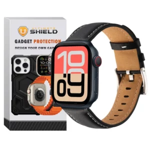 بند آلتیمیت شیلد مدل Leather SM BK مناسب برای اپل واچ 46 میلی متری سری 10