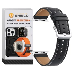 بند آلتیمیت شیلد مدل Leather SM BK مناسب برای اپل واچ 44/45/46/49 میلی متری سری SE1/SE2/SE3/4/5/6/7/8/9/10/11/Ultra/Ultra2/Ultra3