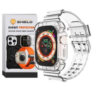 بند آلتیمیت شیلد مدل Transparent Shock مناسب برای اپل واچ 49 mm سری Ultra 2 به همراه کاور