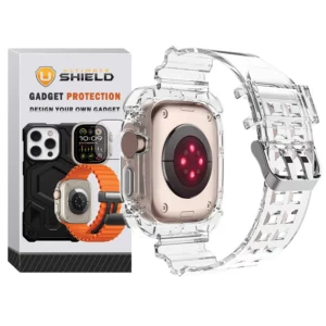 بند آلتیمیت شیلد مدل Transparent Shock مناسب برای اپل واچ 45 mm سری 8 به همراه کاور