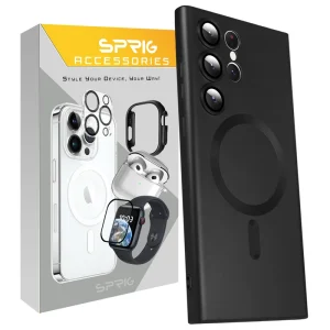 کاور اسپریگ مدل Magsafe Ring Metal مناسب برای گوشی موبایل سامسونگ Galaxy S24 Ultra به همراه محافظ لنز