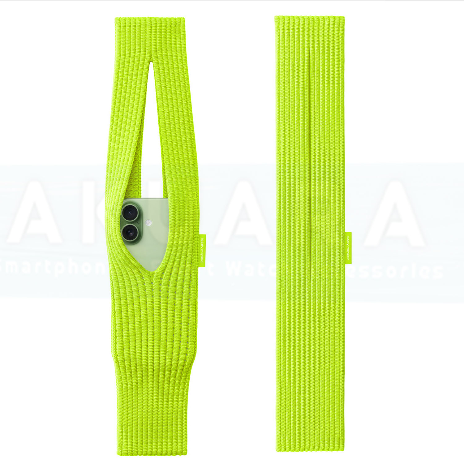 iPhone Pocket با بند کوتاه یک اکسسوری مینیمال برای حمل آیفون است که با ساختار پارچه‌ای بافتنی و انعطاف‌پذیر، نقش یک جیب مستقل و جمع‌وجور را برای گوشی ایفا می‌کند. در این مدل، آیفون به‌طور کامل داخل پاکت قرار می‌گیرد و به‌واسطه خاصیت کشسانی پارچه، بدون نیاز به زیپ یا بست مکانیکی، به‌صورت پایدار در جای خود می‌ماند.