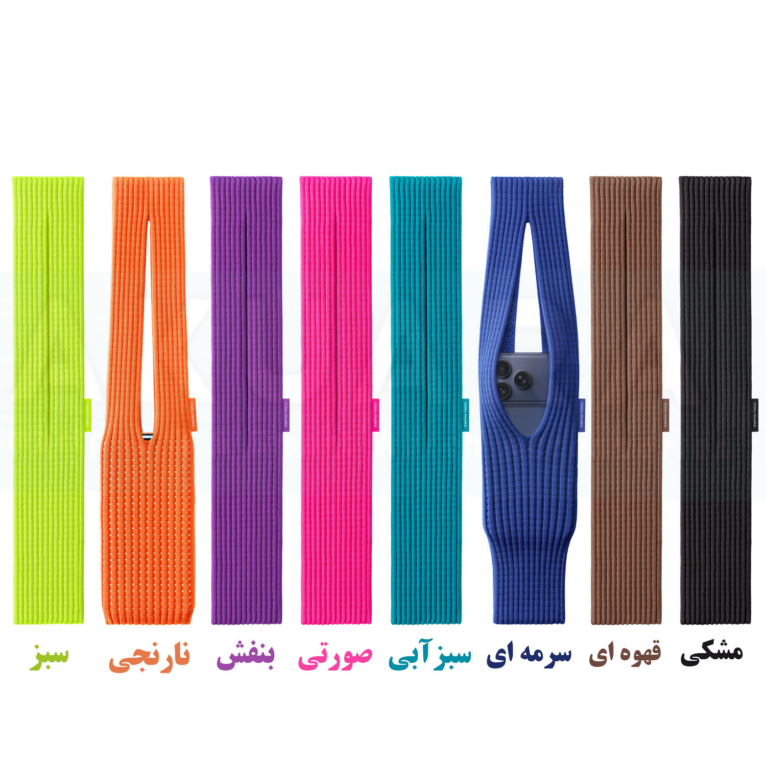 iPhone Pocket بند کوتاه با رنگ‌بندی متنوع عرضه می‌شود و بیشتر از آنکه یک اکسسوری فشن باشد، بر سادگی، وزن کم و کاربرد عملی تمرکز دارد. این مدل برای کاربرانی مناسب است که می‌خواهند آیفون همیشه نزدیک، قابل دسترس و بدون شلوغی اضافی حمل شود، در عین حال ظاهر محصول ساده و غیرصنعتی باقی بماند.