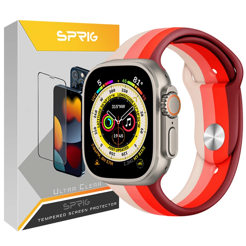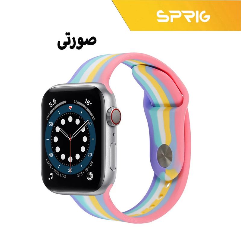 بند سیلیکونی اسپریگ مدل Rainbow مناسب برای اپل واچ سایز 42 / 44 / 45 / 49 میلی متری