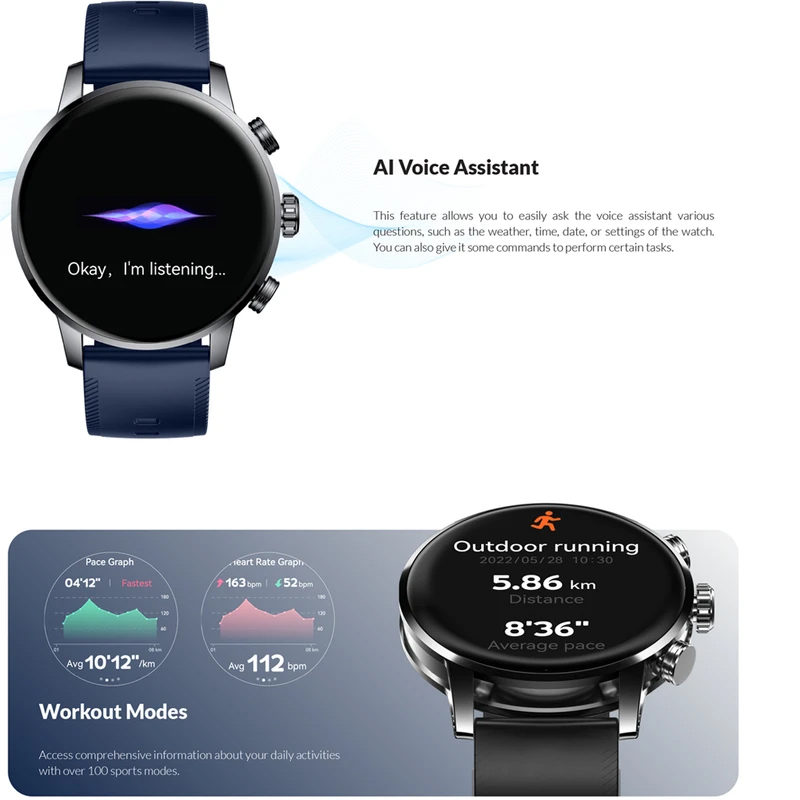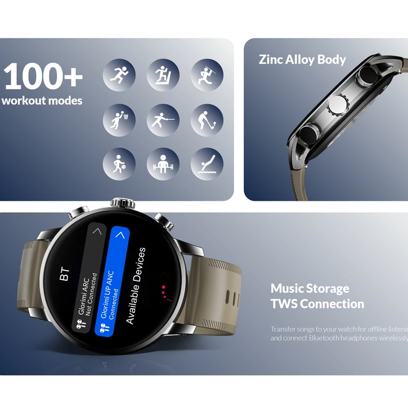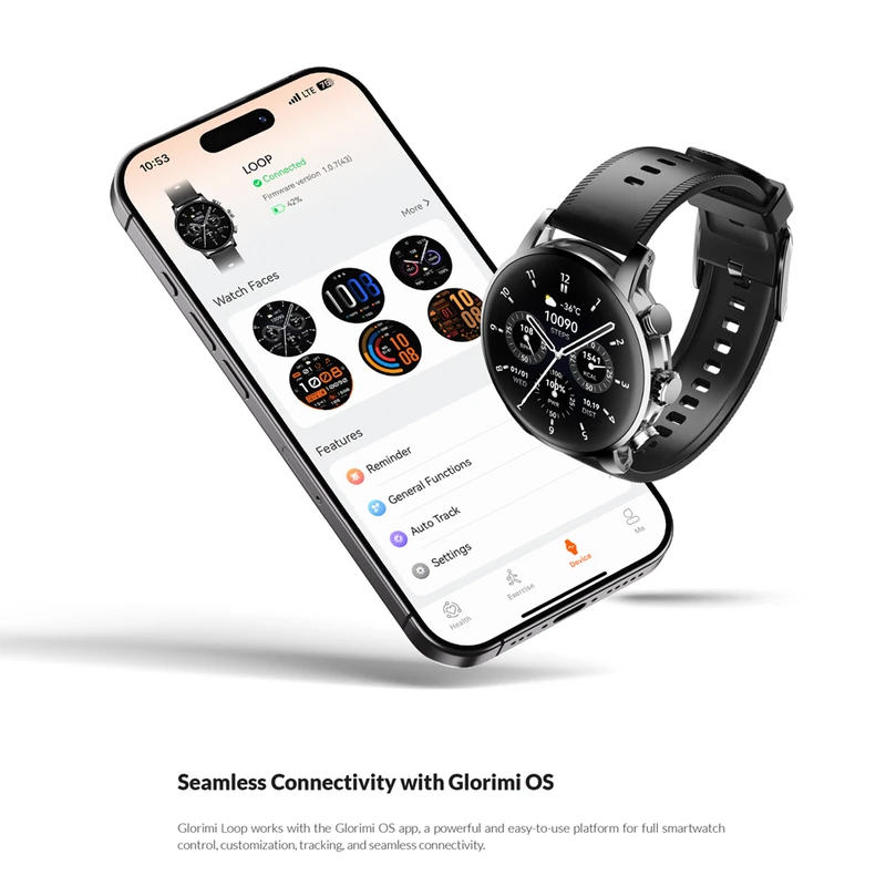 ساعت هوشمند گلوریمی مدل Loop، با سایز قاب ۴۶ میلیمتری و فرم صفحه دایرهای، یک گجت پوشیدنی شیک است که برای کاربریهای ورزشی، رسمی و روزمره آقایان و بانوان طراحی شده؛ بدنه این ساعت با ابعاد ۴۶.۴x۴۶.۴x۱۱.۶۵ میلیمتر از جنس آلیاژ روی ساخته شده که در برابر نفوذ آب و گرد و غبار مقاومت دارد و بند آن از جنس سیلیکون با قفل سگکی ساده است و قابلیت تعویض بند دارد؛ در اقلام همراه این محصول دو عدد بند سیلیکونی و مگنتی ارائه میشود؛ صفحه نمایش این ساعت از نوع AMOLED با اندازه ۱.۴۳ اینچ است که رزولوشن ۴۶۶x۴۶۶ پیکسل و نرخ نوسازی ۶۰ هرتز دارد و با روشنایی فوقالعاده ۱۳۵۰ نیت، دید بسیار خوبی زیر نور خورشید ارائه میدهد و از ویژگی صفحه همیشه روشن (Always-on Display) پشتیبانی میکند؛ این ساعت از طریق بلوتوث نسخه ۵.۳ به گوشیهای دارای سیستم عامل Android و iOS متصل میشود و از قابلیت مکالمه از طریق بلوتوث برخوردار است؛ قابلیتهای نرمافزاری ساعت شامل پشتیبانی کامل از زبان فارسی در منو و اعلانها (همراه با انگلیسی، چینی و عربی)، کنترل موسیقی و قابلیت تغییر طرح ساعت یا تم است؛ سنسورهای ورزشی و سلامتی آن شامل شمارنده ضربان قلب، سنجش اکسیژن خون، گامشمار و فشار سنج است و از تمرینات مختلف ورزشی پشتیبانی میکند؛ منبع انرژی ساعت یک باتری ۳۶۰ میلیآمپر ساعتی است که با کابل شارژ مغناطیسی شارژ میشود و اقلام همراه آن شامل محافظ صفحه نمایش، کابل شارژ مگنتی و دفترچه راهنما است.