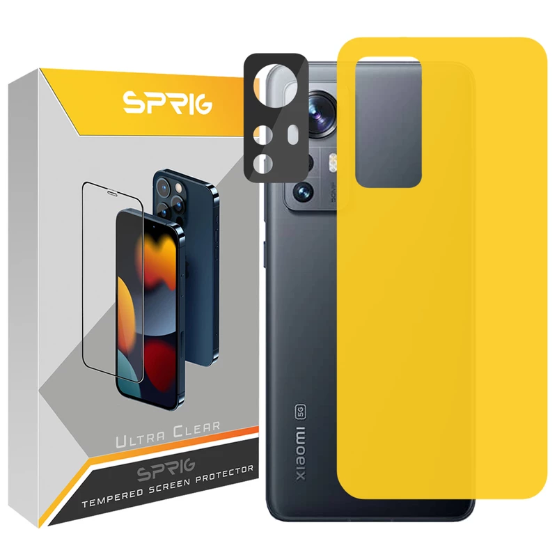 محافظ لنز دوربین اسپریگ مدل 3D-BK مناسب برای گوشی موبایل شیائومی Mi 12 / 12X به همراه محافظ پشت گوشی