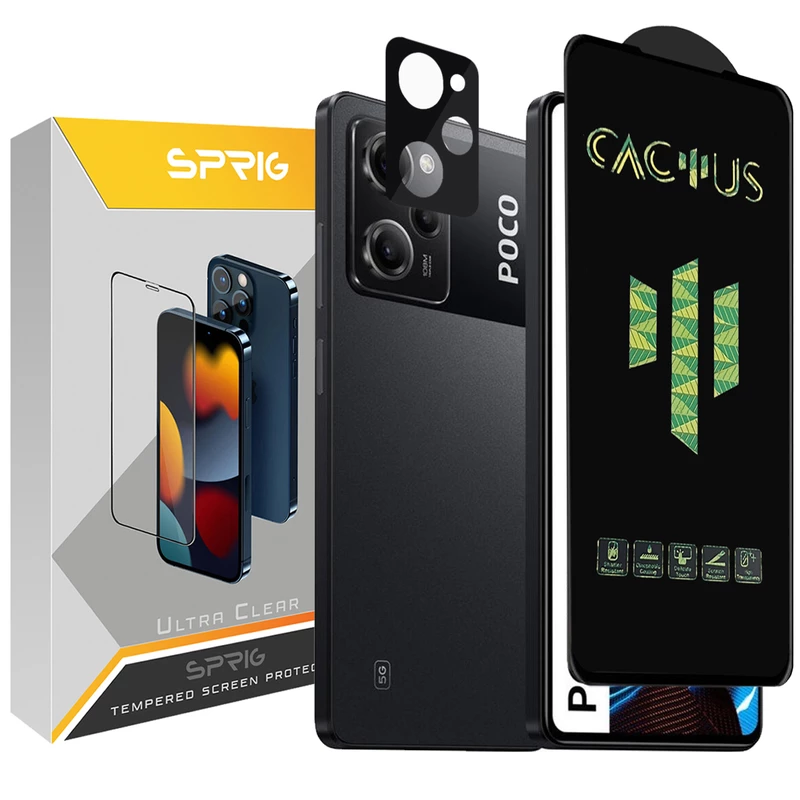 محافظ لنز دوربین اسپریگ مدل 3D-Cactus مناسب برای گوشی موبایل شیائومی Poco X5 Pro 5G به همراه محافظ صفحه نمایش