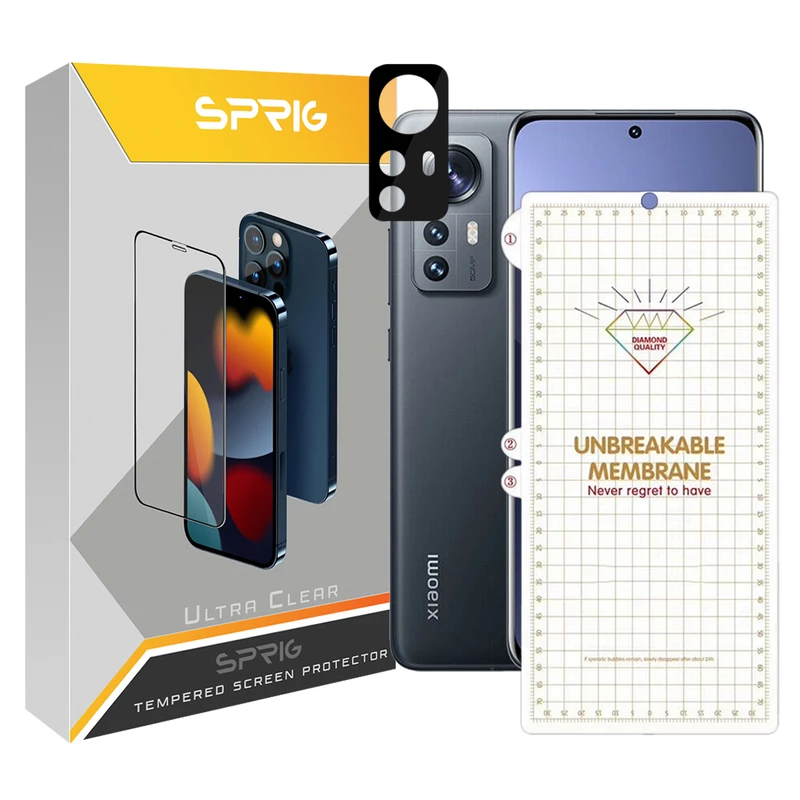 محافظ لنز دوربین اسپریگ مدل 3D-Diamond مناسب برای گوشی موبایل شیائومی Mi 12 / 12X به همراه محافظ صفحه نمایش گوشی