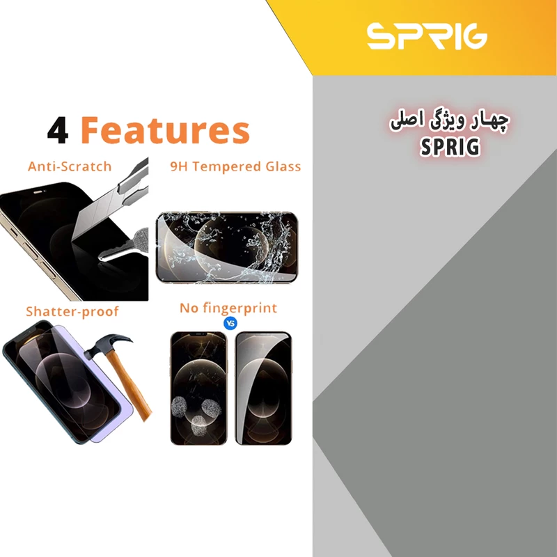 محافظ لنز شیشه ای اسپریگ دقیقا به اندازه دوربین پشت گوشی شما ساخته شده است و از این رو به خوبی روی آن قرار گرفته و نصب آسانی هم دارد. این محافظ لنز دوربین به دلیل طراحی بسیار باریک و شفافیت قابل توجه ، روی کیفیت تصاویر ثبت شده با دوربین گوشی شما تاثیری نمیگذارد. این محافظ لنز در برابر ضربات وارده به لنز، خط و خش و اثر انگشت نیز مقاوم است. محافظ صفحه نمایش اسپریگ، یک محافظ صفحه نمایش ضد خراش و باکیفیت است که به خوبی از اسکرین موبایل شما حفاظت میکند. این گلس در عین محافظت کامل از صفحه نمایش موبایل شما کوچکترین تاثیری بر عملکرد تاچ و لمس گوشی نخواهد داشت و کیفیت صفحه نمایش را نیز کاهش نمی دهد علاوه بر این جلوی خط و خراش افتادن روی ال سی دی را می گیرد و در صورت زمین خوردن، آسیبی به صفحه نمایش گوشی وارد نمیشود.