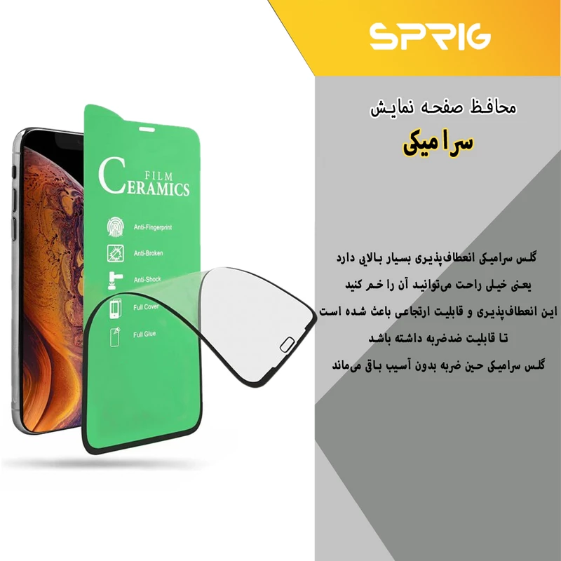 محافظ لنز شیشه ای اسپریگ دقیقا به اندازه دوربین پشت گوشی شما ساخته شده است و از این رو به خوبی روی آن قرار گرفته و نصب آسانی هم دارد. این محافظ لنز دوربین به دلیل طراحی بسیار باریک و شفافیت قابل توجه ، روی کیفیت تصاویر ثبت شده با دوربین گوشی شما تاثیری نمیگذارد. این محافظ لنز در برابر ضربات وارده به لنز، خط و خش و اثر انگشت نیز مقاوم است. محافظ صفحه نمایش اسپریگ، یک محافظ صفحه نمایش ضد خراش و باکیفیت است که به خوبی از اسکرین موبایل شما حفاظت میکند. این گلس در عین محافظت کامل از صفحه نمایش موبایل شما کوچکترین تاثیری بر عملکرد تاچ و لمس گوشی نخواهد داشت و کیفیت صفحه نمایش را نیز کاهش نمی دهد علاوه بر این جلوی خط و خراش افتادن روی ال سی دی را می گیرد و در صورت زمین خوردن، آسیبی به صفحه نمایش گوشی وارد نمیشود.