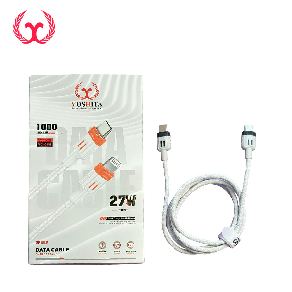 کابل فست شارژ اپل 27وات یوشیتا Type-C به لایتنینگ مدل YC-066