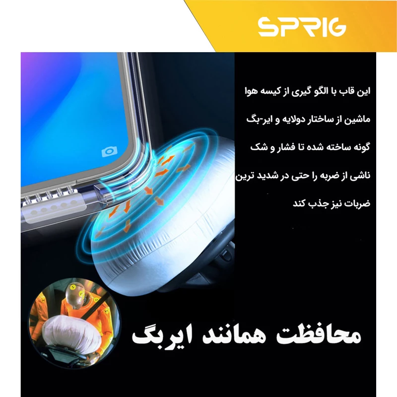 کاور اسپریگ مدل Airbag به دلیل جنس ژله ای که دارد دارای انعطاف پذیری بالایی است و می تواند از گوشی شما در برابر خط و خش محافظت کند. یکی از معضلات محافظ های شفاف این است که بعد از مدتی استفاده از حالت بی رنگی در آمده و رنگ زرد به خود می گیرند و جلوه خود را از دست می دهند، به همین علت در این قاب بی رنگ از متریال PC شفاف استفاده شده که به هیچ عنوان در استفاده ی طولانی مدت بی رنگی و شفافیت خود را از دست نخواهد داد و زیبایی خود را حفظ می کند.