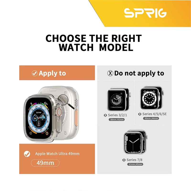 کاور اسپریگ مدل Clear مناسب برای اپل واچ Ultra 49 میلیمتری به همراه محافظ صفحه نمایش