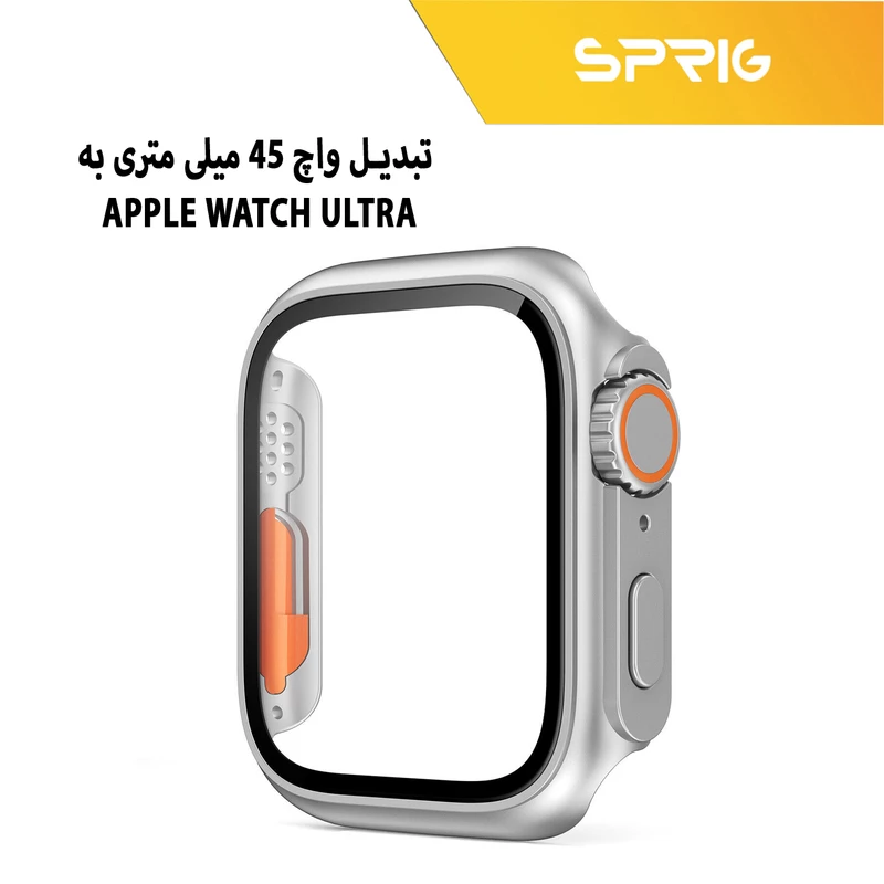 کاور اسپریگ مدل face-off ، بدنه ی اپل واچ 45 میلی متری شما را تبدیل به اپل واچ ultra میکند.در واقع این محصول اپل واچ 45 میلی متری شما را به یک اپل واچ ultra 45mm تبدیل میکند.