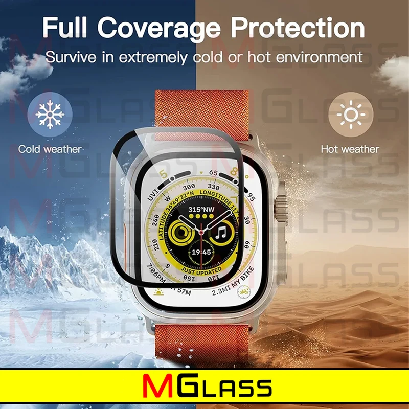 محافظ صفحه نمایش شیشهای SH-FULL سازگاری کامل با ابعاد صفحه نمایش ساعت الترا دارد و در برابر خط و خش مقاوم بوده و برای استفادهی روزمره بسیار مناسب است. شفافیت بالای این گلس موجب میشود از کیفیت تصویر و وضوح صفحه نمایش بهره مند شوید. ضخامت مناسبی دارد که سبب میشود حساسیت لمسی صفحه نمایش به طور کامل حفظ شود. مواد با کیفیت به کار رفته در این محصول باعث میشود که مقاومت بالایی در برابر ضربه و شکستگی داشته باشد. همچنین نصب این محصول بسیار آسان بوده و به علت چسبندگی بالا به هنگام نصب حباب و برجستگی اضافه روی صفحه نمایش ساعت شما به وجود نخواهد آمد و محافظ به طور دقیق روی ساعت میچسبد.
