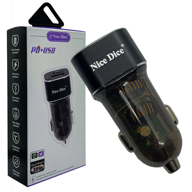 شارژر فندکی Nice Dice جدید ترین شارژ فندکی بازار می باشد ، دارای دو درگاه USB و USB-C می باشد. |