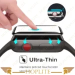 محافظ صفحه نمایش نانو هاپلایت مدل PMA-HL دارای مزایایی مانند ضد خط و خش ، نیفتادن حباب روی صفحه نمایش ، ضد باکتری و جرم و نامرئی بودن آن است. این نوع محافظ صفحه ضخامت بسیار کمی نسبت به گلس های شیشه ای دارد بنابراین ظاهر ساعت شما را چندان تغییر نمی دهد. این نوع گلس به دلیل انعطاف پذیری بیشتر ، راحت تر روی ساعت هایی که لبه های منحنی دارند قرار می گیرند ولی نصب این نوع محافظ صفحه نیاز به دقت دارد.