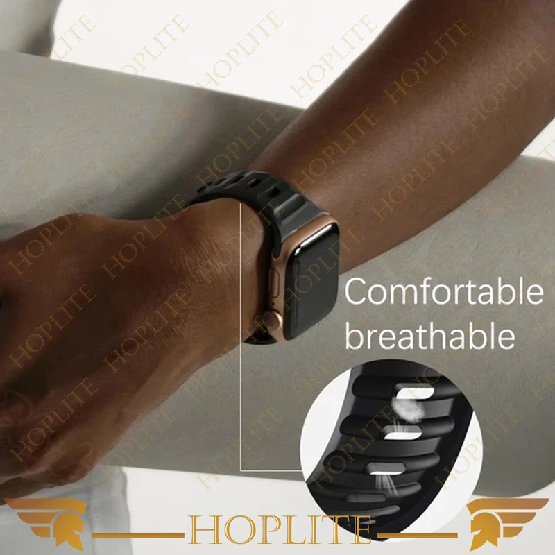 بند هاپلایت مدل Spig Sport HL سبک وزن، بادوام و قابل تنظیم می باشد. نوار ساخته شده از جنس سیلیکون سازگار با پوست، قابل تنفس، مقاوم در برابر عرق و مقاوم در برابر آب میباشد. مناسب برای کوهنوردی، پیاده روی، دویدن، صخره نوردی، دویدن، دوچرخه سواری و سایر ورزش های ماجراجویی در فضای باز میباشد. بندهای طراحی شده برای ساعت اپل دارای یک هوک فلزی قابل تنظیم برای انعطاف پذیری و ایمن کردن بند شماست.