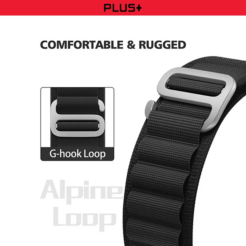 بند مدل Alpine سبک وزن، بادوام و قابل تنظیم، به طور یکپارچه از دو لایه پارچه، بدون دوخت بافته شده می باشد. از قلابهای تیتانیومی مقاوم در برابر خوردگی و بدون زنگ زدگی برای اتصال ایمن استفاده می کند. نوار ساخته شده از مواد نایلونی سازگار با پوست، نوارهای نایلونی کششی بافته شده، قابل تنفس، مقاوم در برابر عرق و مقاوم در برابر آب میباشد. همچنین با قلاب تیتانیوم G، سبک وزن میباشد. مناسب برای کوهنوردی، پیاده روی، دویدن، صخره نوردی، دویدن، دوچرخه سواری و سایر ورزش های ماجراجویی در فضای باز میباشد. بندهای طراحی شده برای ساعت اپل دارای یک هوک فلزی قابل تنظیم برای انعطاف پذیری و ایمن کردن بند شماست
