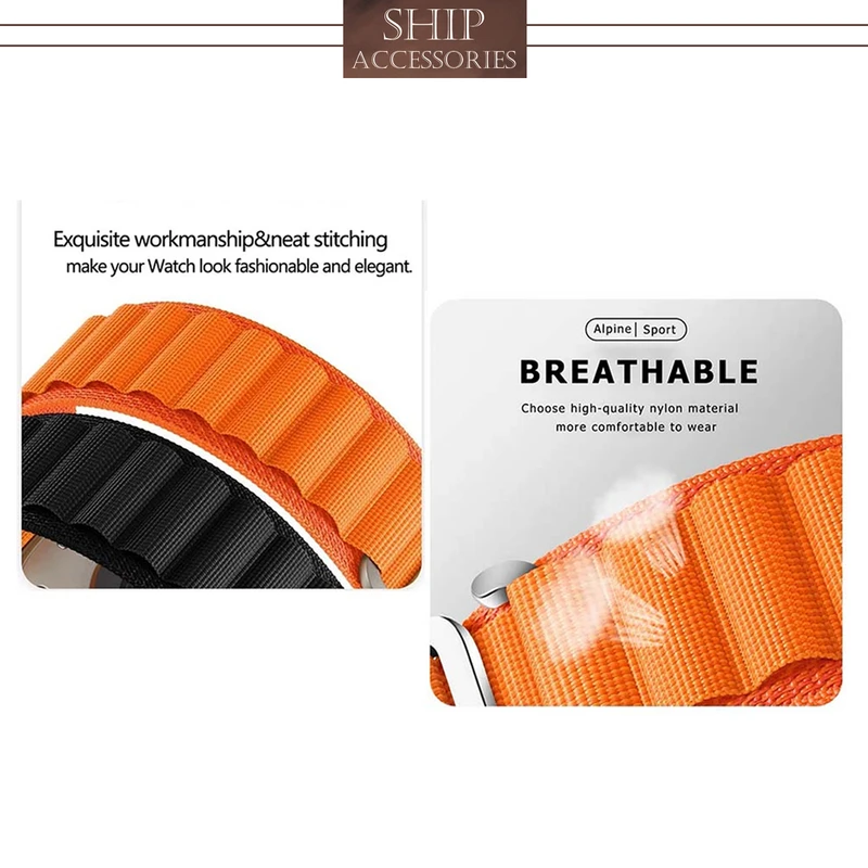 بند مدل Alpine سبک وزن، بادوام و قابل تنظیم، به طور یکپارچه از دو لایه پارچه، بدون دوخت بافته شده می باشد. از قلابهای تیتانیومی مقاوم در برابر خوردگی و بدون زنگ زدگی برای اتصال ایمن استفاده می کند. نوار ساخته شده از مواد نایلونی سازگار با پوست، نوارهای نایلونی کششی بافته شده، قابل تنفس، مقاوم در برابر عرق و مقاوم در برابر آب میباشد. همچنین با قلاب تیتانیوم G، سبک وزن میباشد. مناسب برای کوهنوردی، پیاده روی، دویدن، صخره نوردی، دویدن، دوچرخه سواری و سایر ورزش های ماجراجویی در فضای باز میباشد. بندهای طراحی شده برای ساعت اپل دارای یک هوک فلزی قابل تنظیم برای انعطاف پذیری و ایمن کردن بند شماست