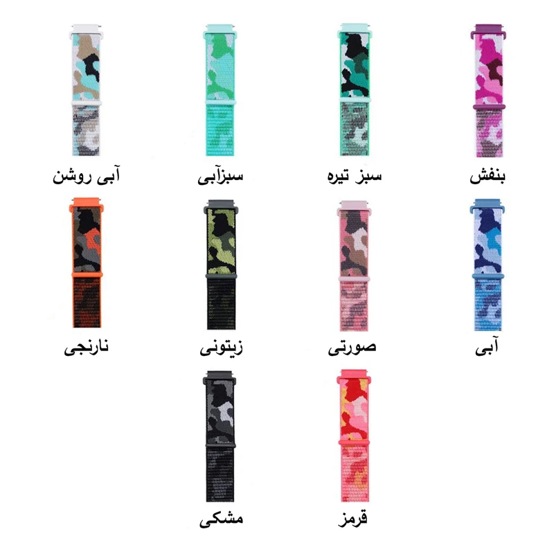 بند Nylon Army یک بند جدید و خاص در بازار بند و ساعت هوشمند است. این بند به دلیل جذابیت ظاهری و تنوع رنگ شادی که دارد در میان کاربران محبوبیت زیادی کسب کرده است. این بند از جنس نایلون و مواد تشکیل دهندهی مرغوب بوده که باعث ایجاد احساس سبکی و راحتی روی مچ شما میشود. این بند قفل و سگک ندارد و به صورت چسبی باز و بسته میشود. بافت لطیف و نرم این بند باعث میشود روی مچ شما لیز نخورد و برای استفاده طولانی مدت و روزمره مفید باشد.