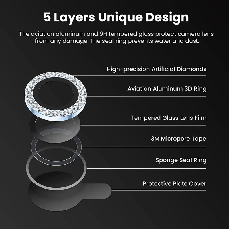 محافظ لنز دوربین رینگی با در نظر گرفتن دو جنبه ی زیبایی و حفاظت، یک محافظ تمام عیار برای لنز دوربین میباشد. این محافظ برای دوربین اصلی طراحی شده است تا آن را از خط و خش، شکستگی و آسیب های احتمالی دیگر حفظ کند و مانع از نشستن هر گونه لک و چربی روی لنز و در نتیجه افت کیفیت دوربین شما می شود. با وجود نصب آسانی که دارد میتوانید به راحتی آن را روی دوربین گوشی خود نصب کنید و نگران ماندن رد این گلس روی دوربین به هنگام جدا کردن آن نباشید چراکه هیچ ردی روی شیشه دوربین برجای نمی گذارد و پس از جدا کردن آن، دوربین مثل روز اولش خواهد بود. در نهایت اینکه این محافظ لنز تاثیری روی لنز دوربین و کیفیت تصاویر یا فیلم های ثبت شده ندارد و می توانید با خیال راحت از آن استفاده کنید.