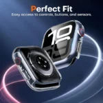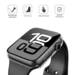 گاردگلس مدل 360 ، بدنهای از جنس پلیکربنات دارد. این متریال نسبت به TPU سختتر بوده و با اینکه نسبت به آن انعطافپذیری کمتری دارد ولی محافظ قویتر و مستحکمتری محسوب میشود. هرچند سخت بودن این کاور اختلالی در نصب آن ایجاد نمیکند و با کمی دقت میتوان به آسانی آن را روی ساعت نصب نمود. برشکاری دقیق کاور در قسمت دکمهها و پورتها سبب شده تا در دسترسی به آنها محدودیتی ایجاد نشود. علاوه بر این ضخامت کم این محصول اپل واچ شما را بیش از حد برجسته نمیکند و کاملا با ابعاد ساعت هماهنگ است.گلس حرارتدیده این محصول نیز با بهرهگیری از یک طراحی هوشمندانه به خوبی فشار لمس را به صفحه نمایش ساعت انتقال میدهد و تا حد ممکن اختلالی در عملکرد تاچ ایجاد نمیکند.