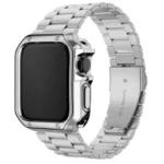 همچنین همراه این بند کاوری عرضه میشود که بدنهای از جنس TPU یا همان پلاستیک نرم دارد. این متریال دارای خاصیت انعطاف پذیری بوده و میتواند به راحتی از اپل واچ شما در برابر ضربه و خط و خش مراقبت کند. این محصول به هنگام نصب نیاز به دقت بالایی ندارد و میتوانید به راحتی آن را نصب کنید. برشکاری دقیق این کاور محافظ در قسمت دکمهها و پورتها سبب شده تا در دسترسی به آنها محدودیتی ایجاد نشود و به هنگام شارژ کردن اپل واچ نیازی به جداسازی کاور نیست. علاوه بر این ضخامت کم این محصول اپل واچ شما را بیش از حد برجسته نمیکند و کاملا با ابعاد ساعت هماهنگ است.