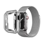 این بند اسمارت واچ از جنس فلزی باکیفیت و مقاوم ساخته شده است که علاوه بر زیبایی و استحکام، کاملاً ضد حساسیت بوده و برای انواع پوست مناسب است. طراحی این بند به گونهای است که تعویض و نصب آن بسیار آسان بوده و تجربهای راحت و بدون دردسر را برای شما فراهم میکند. اگر به دنبال ترکیب شیکی از استایل و کاربرد هستید، این بند انتخابی ایدهآل برای شماست. همچنین همراه این بند کاوری عرضه میشود که بدنهای از جنس TPU یا همان پلاستیک نرم دارد. این متریال دارای خاصیت انعطاف پذیری بوده و میتواند به راحتی از اسمارت واچ شما در برابر ضربه و خط و خش مراقبت کند. این محصول به هنگام نصب نیاز به دقت بالایی ندارد و میتوانید به راحتی آن را نصب کنید. برشکاری دقیق این کاور محافظ در قسمت دکمهها و پورتها سبب شده تا در دسترسی به آنها محدودیتی ایجاد نشود و به هنگام شارژ کردن اسمارت واچ نیازی به جداسازی کاور نیست. علاوه بر این ضخامت کم این محصول اسمارت واچ شما را بیش از حد برجسته نمیکند و کاملا با ابعاد ساعت هماهنگ است.