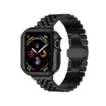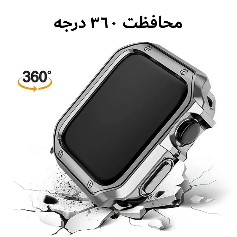 این بند اپل واچ از جنس فلزی باکیفیت و مقاوم ساخته شده است که علاوه بر زیبایی و استحکام، کاملاً ضد حساسیت بوده و برای انواع پوست مناسب است. طراحی این بند به گونهای است که تعویض و نصب آن بسیار آسان بوده و تجربهای راحت و بدون دردسر را برای شما فراهم میکند. اگر به دنبال ترکیب شیکی از استایل و کاربرد هستید، این بند انتخابی ایدهآل برای شماست. همچنین همراه این بند کاوری عرضه میشود که بدنهای از جنس TPU یا همان پلاستیک نرم دارد. این متریال دارای خاصیت انعطاف پذیری بوده و میتواند به راحتی از اپل واچ شما در برابر ضربه و خط و خش مراقبت کند. این محصول به هنگام نصب نیاز به دقت بالایی ندارد و میتوانید به راحتی آن را نصب کنید. برشکاری دقیق این کاور محافظ در قسمت دکمهها و پورتها سبب شده تا در دسترسی به آنها محدودیتی ایجاد نشود و به هنگام شارژ کردن اپل واچ نیازی به جداسازی کاور نیست. علاوه بر این ضخامت کم این محصول اپل واچ شما را بیش از حد برجسته نمیکند و کاملا با ابعاد ساعت هماهنگ است.