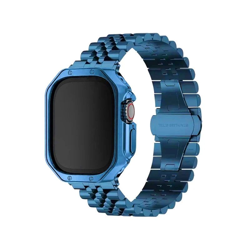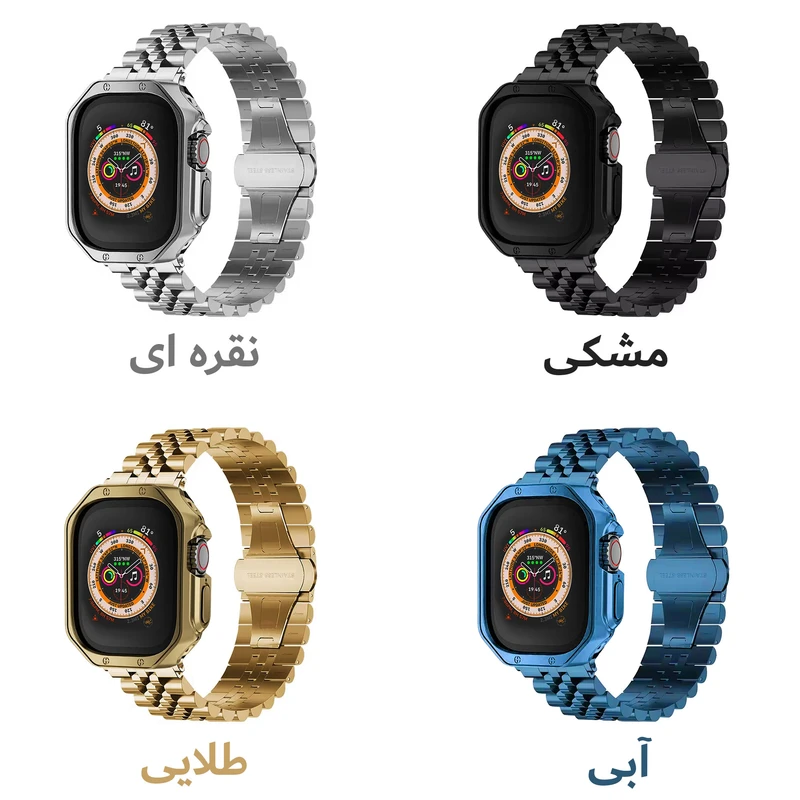 این بند اپل واچ از جنس فلزی باکیفیت و مقاوم ساخته شده است که علاوه بر زیبایی و استحکام، کاملاً ضد حساسیت بوده و برای انواع پوست مناسب است. طراحی این بند به گونهای است که تعویض و نصب آن بسیار آسان بوده و تجربهای راحت و بدون دردسر را برای شما فراهم میکند. اگر به دنبال ترکیب شیکی از استایل و کاربرد هستید، این بند انتخابی ایدهآل برای شماست. همچنین همراه این بند کاوری عرضه میشود که بدنهای از جنس TPU یا همان پلاستیک نرم دارد. این متریال دارای خاصیت انعطاف پذیری بوده و میتواند به راحتی از اپل واچ شما در برابر ضربه و خط و خش مراقبت کند. این محصول به هنگام نصب نیاز به دقت بالایی ندارد و میتوانید به راحتی آن را نصب کنید. برشکاری دقیق این کاور محافظ در قسمت دکمهها و پورتها سبب شده تا در دسترسی به آنها محدودیتی ایجاد نشود و به هنگام شارژ کردن اپل واچ نیازی به جداسازی کاور نیست. علاوه بر این ضخامت کم این محصول اپل واچ شما را بیش از حد برجسته نمیکند و کاملا با ابعاد ساعت هماهنگ است.