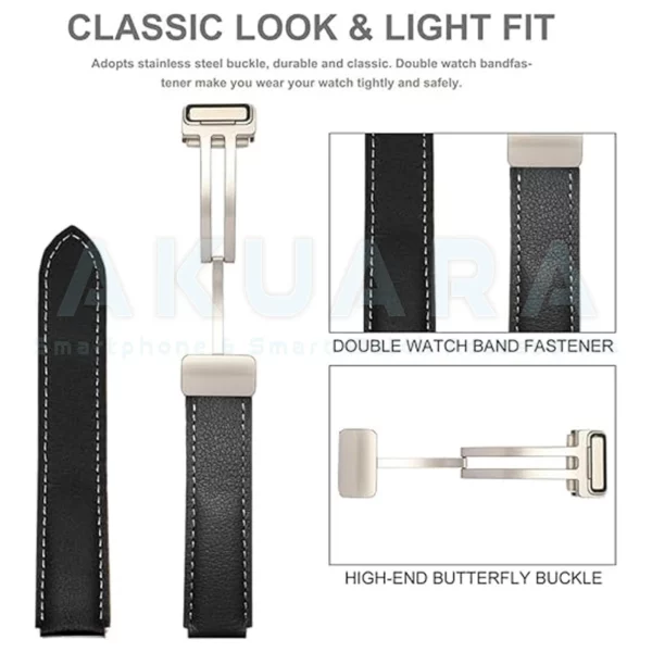 بند آکوآرا از چرم مصنوعی با بهترین کیفیت ساخته شده که نه تنها ظاهری جذاب دارد، بلکه بسیار مقاوم و راحت است. قفل مگنتی این بند باعث میشود تا بستن و باز کردن آن به سادگی و با اطمینان بالا انجام شود.طراحی شیک و مدرن آن با هر سبک و سلیقهای هماهنگ میشود.