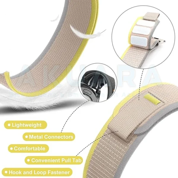 بند تریل لوپ دارای ظاهری جذاب و شیک است و یکی از بندهای جدید معرفی شده توسط آکوآرا است. این بند مناسب برای ساعت های هوشمند است که قابلیت تعویض بند را دارند. بند Trail Loop دارای جنس نایلونی سبک است که دست شما را در طول روز اذیت نمی کند و قفل آن به صورت چستی است.