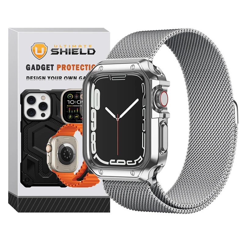 بند آلتیمیت شیلد مدل Milanese LX مناسب برای اپل واچ سری 4/5/6/Se سایز 44 میلی متری به همراه کاور