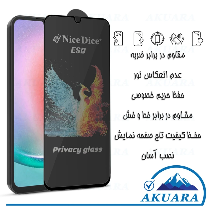 محافظ صفحه نمایش حریم شخصی آکوآرا مدل AKU npv3 مناسب برای گوشی موبایل سامسونگ Galaxy A14 / M14 / A22 5G مجموعه سه عددی