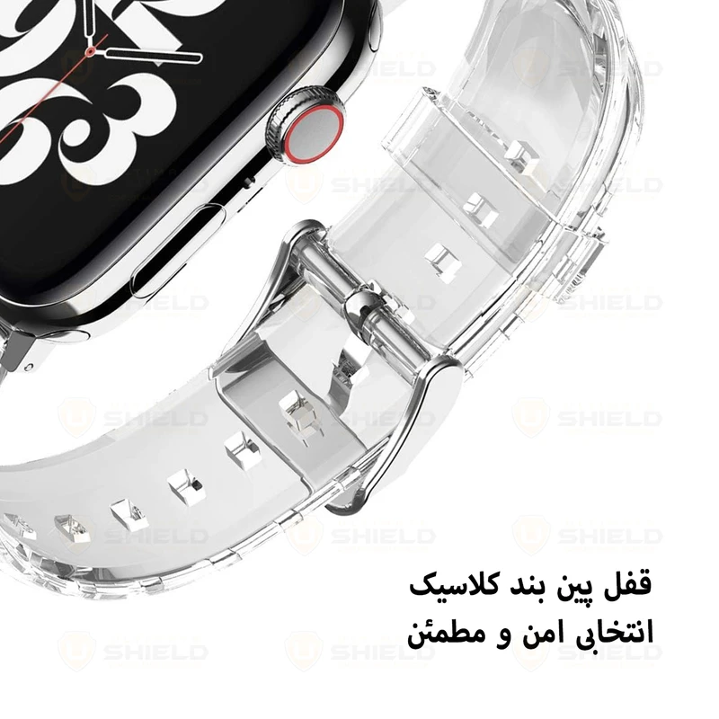 بند آلتیمیت شیلد مدل Transparent Silicone مناسب برای اپل واچ Series 4 44mm / 5 44mm / 6 44mm / Se 44mm / 7 45mm / 8 45mm