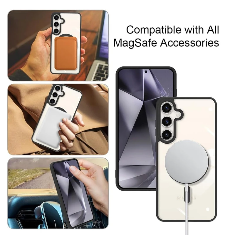 کاور آکوآرا مدل MagSafe GLS BKRNG مناسب برای گوشی موبایل سامسونگ Galaxy S24 FE به همراه محافظ صفحه نمایش و محافظ لنز دوربین