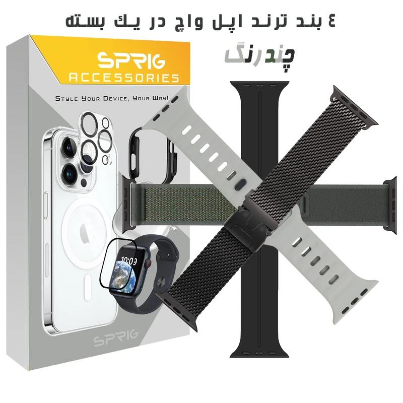 بند اسپریگ مدل Mixed-1 مناسب برای اپل واچ سری Se/1/2/3/4/5/6/7/8/9/10/Ultra/Ultra2 سایز 42/44/45/46/49mm مجموعه 4 عددی