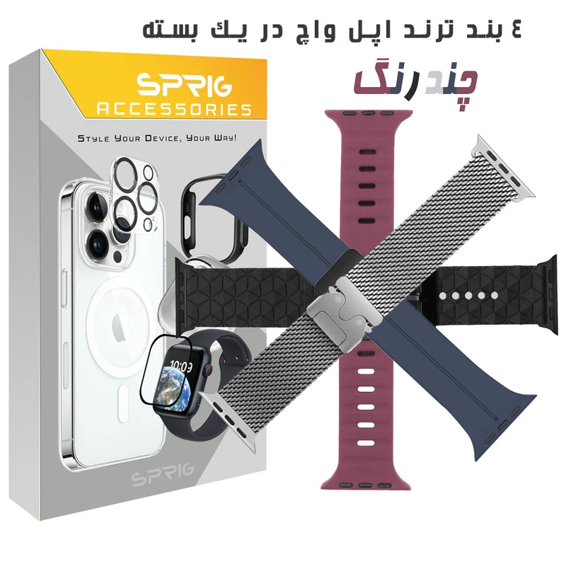 بند اسپریگ مدل Mixed-2 مناسب برای اپل واچ سری Se/1/2/3/4/5/6/7/8/9/10/Ultra/Ultra2 سایز 42/44/45/46/49mm مجموعه 4 عددی