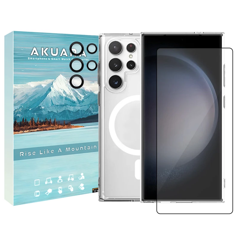 کاور آکوآرا مدل MagSafe GLS BKRNG مناسب برای گوشی موبایل سامسونگ Galaxy S23 Ultra به همراه محافظ صفحه نمایش و محافظ لنز