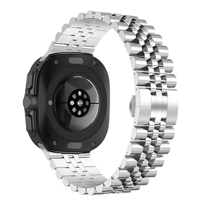 بند آکوآرا مدل 5Bead، طراحیشده برای ساعت هوشمند Samsung Galaxy Watch 7 Ultra، با ظاهری کلاسیک و کیفیت ساخت بالا، انتخابی ایدهآل برای افرادی است که به دنبال ترکیبی از استحکام و زیبایی هستند. این بند از فولاد ضدزنگ ساخته شده و بهطور کامل با مدل ۴۷ میلیمتری Galaxy Watch 7 Ultra سازگار است. قابلیت تنظیم طول بند، امکان تطبیق با اندازههای مختلف مچ دست را فراهم میکند، در حالی که قفل محکم آن، امنیت و راحتی را در استفاده روزمره تضمین مینماید.