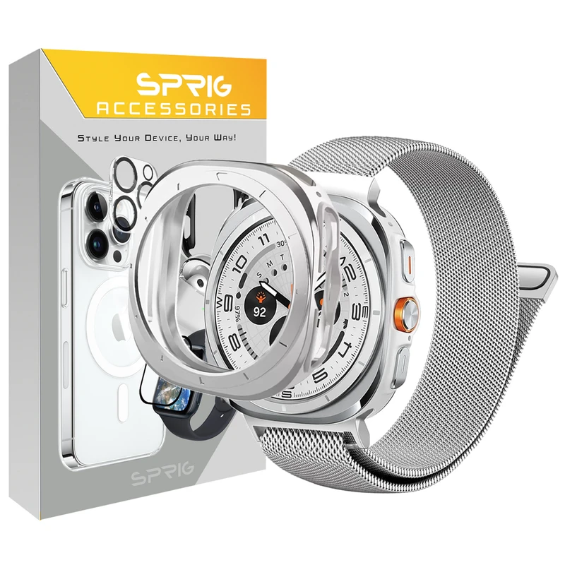 بند اسپریگ مدل Milanese J-Guard مناسب برای ساعت هوشمند سامسونگ Galaxy Watch 7 Ultra 47mm به همراه کاور