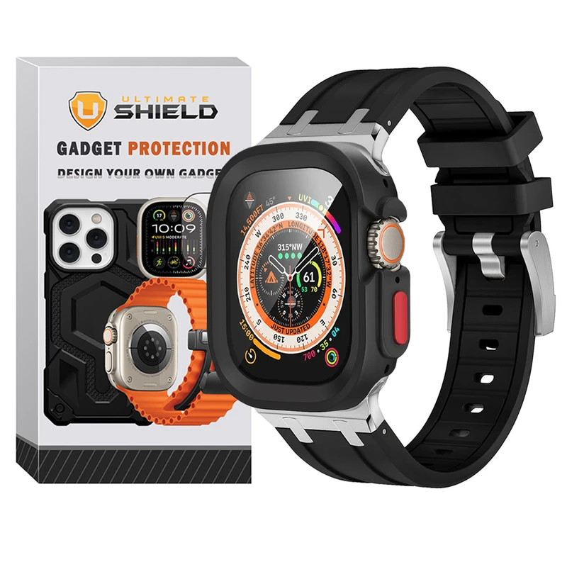 بند آلتیمیت شیلد مدل Stylish Defender مناسب برای اپل واچ 44/45 میلی متری سری 4/5/6/7/SE به همراه کاور