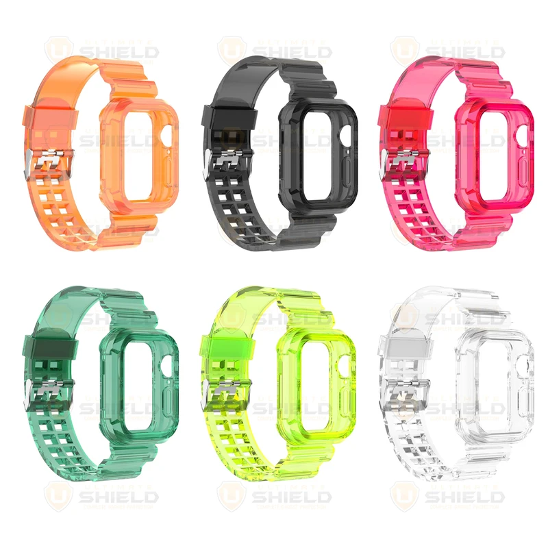 بند آلتیمیت شیلد مدل Transparent Shock مناسب برای اپل واچ 45 mm سری 7/8/9 به همراه کاور