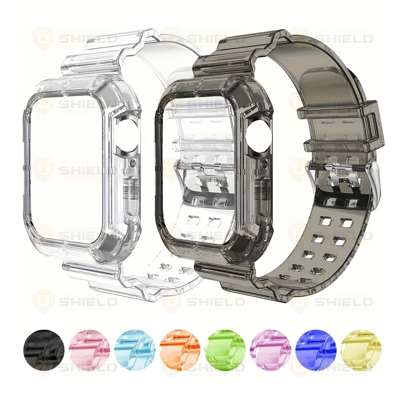 بند آلتیمیت شیلد مدل Transparent Shock مناسب برای اپل واچ 44 mm سری 5 به همراه کاور