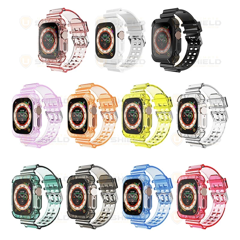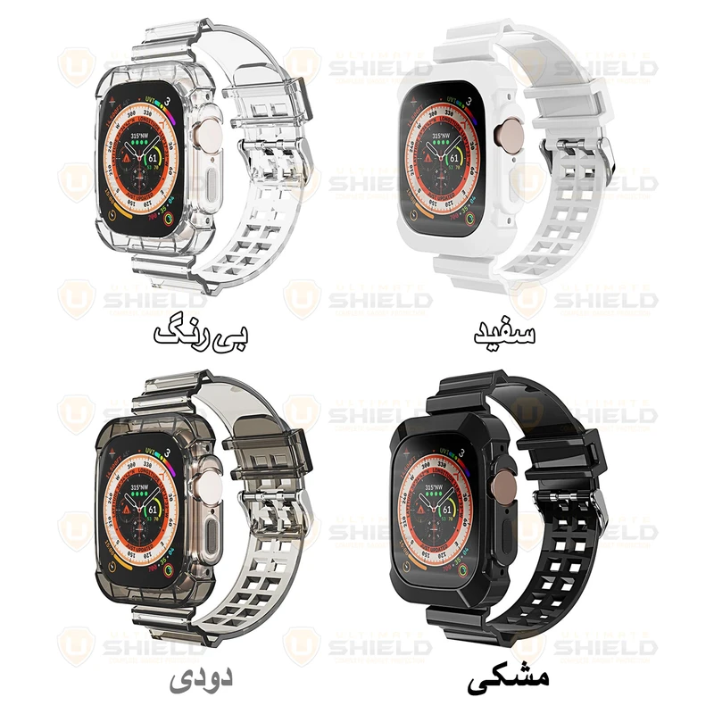 بند آلتیمیت شیلد مدل Transparent Shock مناسب برای اپل واچ 49 mm سری Ultra / Ultra 2 به همراه کاور