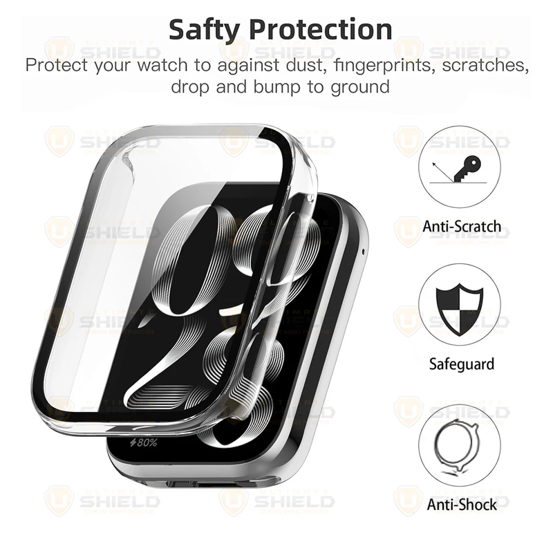 به همراه کاور از جنس پلی کربنات (پلاستیک سخت) – برشکاری دقیق – سبک – بادوام و مقاوم در برابر ضربه و خط و خش – محافظت کامل از بدنه ساعت – محافظت از صفحه نمایش ساعت – نصب آسان |