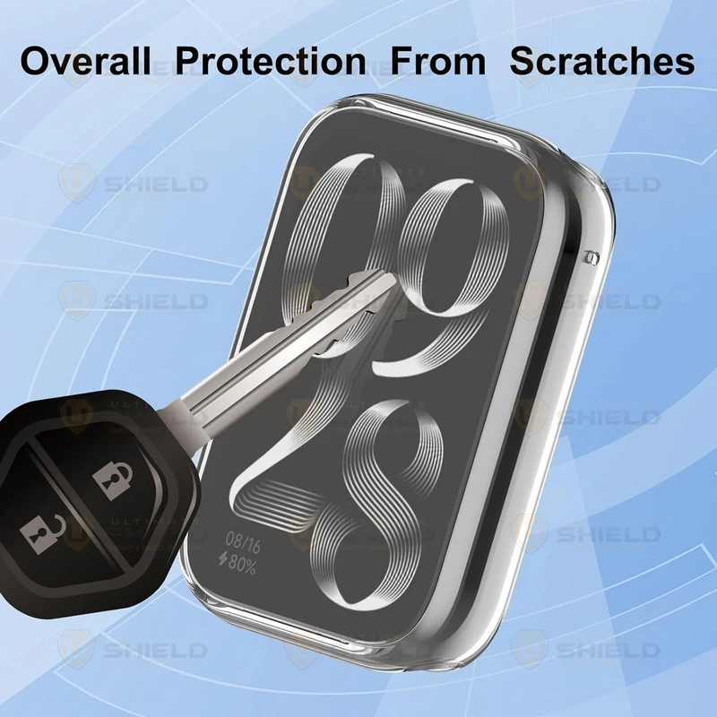 کاور از جنس پلاستیک نرم – سبک – مقاوم در برابر ضربه و خط و خش – دارای محافظ صفحه نمایش – محافظت کامل از بدنه ساعت – نصب آسان – برشکاری دقیق – بند در قسمت اتصال فلزی است. |