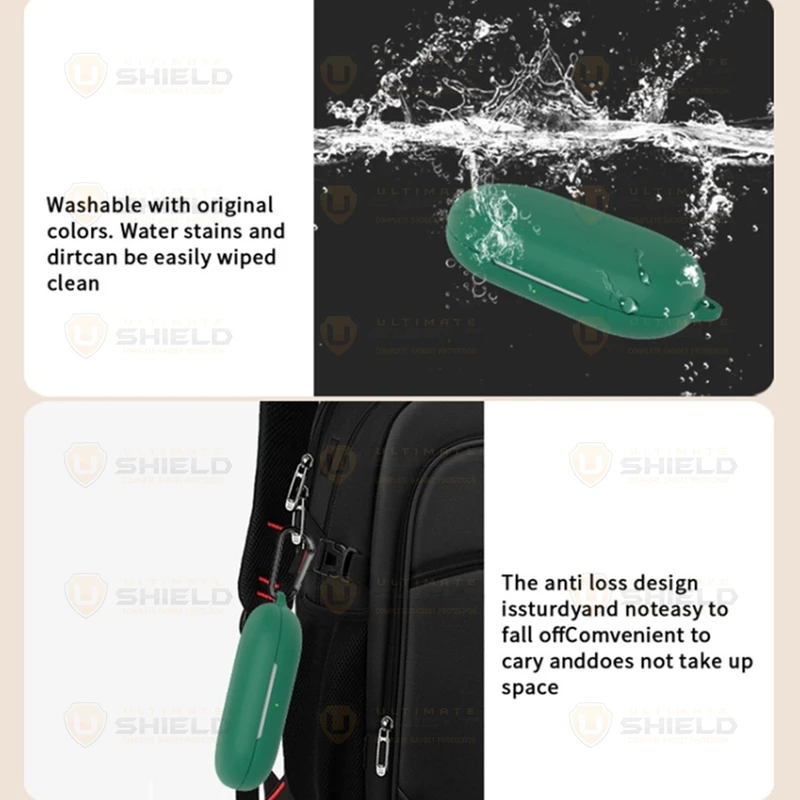یکی از پر کاربرد ترین لوازم جانبی ایرپاد، کاور محافظ کیس شارژ ایرپاد است که با برند آلتیمیت شیلد به بازار عرضه شده و در رنگ های متنوع به فروش می رسد و شما به سادگی می توانید با قاب گوشی موبایل خود ست نمائید. جنس این کاور بسیار نرم همراه با انعطاف پذیری بالا است که می تواند از محفظه شارژ ایرپاد شما در برابر ضربه و خط و خش محافظت نماید. این کاور کیس شارژ هندزفری به دلیل وزن سبکی که دارد به راحتی قابل حمل بوده و به هیچ وجه باعـث سنگینی کیس ایرپاد شما نمی شود. با استفاده از این کاور محافظ به سادگی می توانید به درگاه شارژ کیس ایرپاد دسترسی داشته و اپرپاد خود را شارژ نمائید. پوشش دهی این محصول به گونه ای است که به صورت کامل کیس شارژ ایرپاد شما را در بر می گیرد و از بدنه کیس شارژ شما در برابر خراشیدگی محافظت می کند.