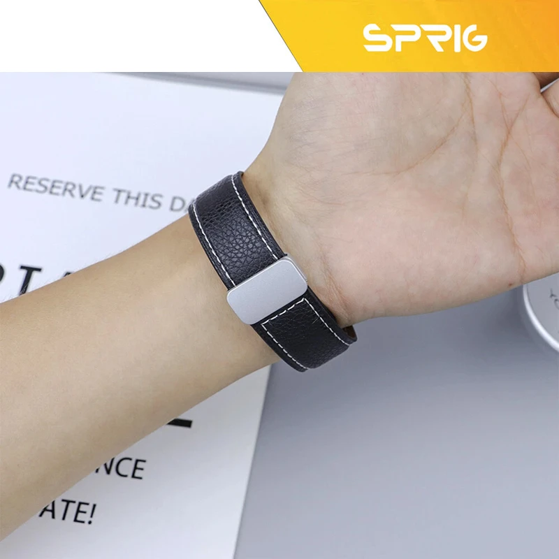 بند اسپریگ مدل Leather Mag-BK ORG مناسب برای ساعت هوشمند سامسونگ Galaxy Watch 6 Classic 47mm